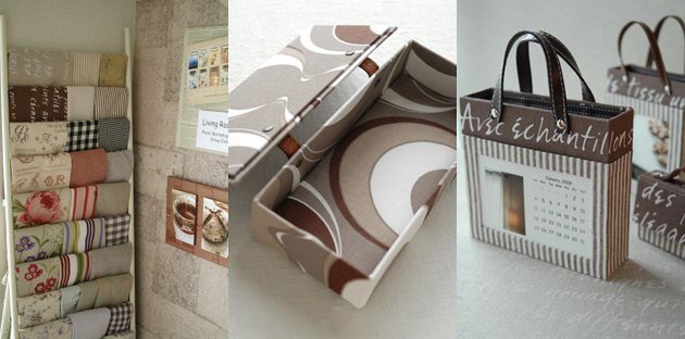 作りやすい形のカルトナージュ、ナチュラルテイストの生地が好きなので、生活の中で自然になじんでいくものを作り続けています。