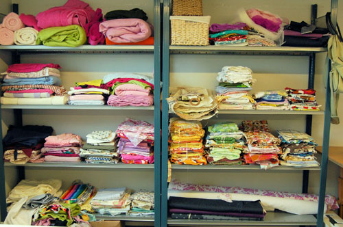 私はヴィンテージの生地を愛する人々のネットワークを持っているので、そこで情報を集めたり、地元のお店やチャリティーショップによく行き、新しい在庫がないかチェックしています。2、3週間に一度は仕入れにでかけますね。良いものを見つけるまでに非常に多くの古いシーツや寝具やテーブルクロスを物色しなくちゃいけない。でも、宝探しが好きだし、お店の人たちも私の趣味を知っていて、取り置きをしてくれることもありますよ。