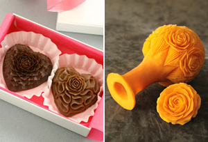 《左》チョコレートやココアをいれて作った石鹸を彫って
