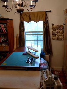 アイロン台はキッチンで使う台に