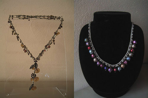 私は作っている時に以外な色や素材の組み合わせに出会うと心が弾みます。大きなビーズも小さなビーズも一粒一粒表情があり愛おしいです。