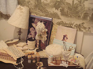 ![]() レース、ばらの花、ワンピース、ミニチュア……乙女アイテムに満たされた店内 |