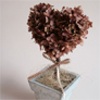 作品づくりのポイントとしては、アレンジもウェディングブーケも、、シックな色合いで、新鮮なことはもちろん、珍しい花やグリーン、実物などを取り合わせて、クールビューティーな雰囲気をつくりあげたいと思っています。