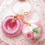 ストロベリーやキャラメルパフェのバッグチャーム。「ファーなどをつけて可