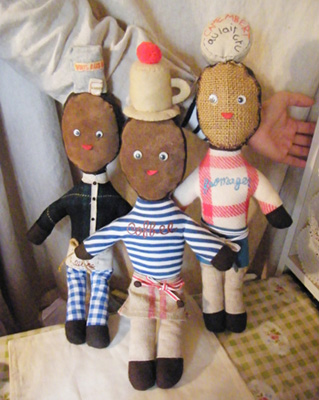この子たちは一緒にパリへ連れていって、サンルイ島にあるお店のショーウインドウに飾ってもらったことがあるんですよ。パリで、ふつうに暮らしている人たちに私たちの作品を見てもらいたい!と思って、お願いしに行きました。クリスマス前の忙しい時期だったので断られることも多かったのですが、パン屋さんとチーズ屋さんが話を聞いてくれて、1週間飾ってもらうことができました。小さな子供たちが見てくれたりして、うれしかったですね。