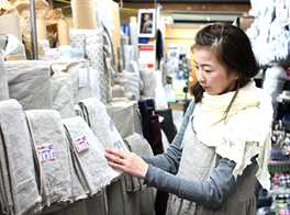 「すべてはお客様が教えてくださっているんです。天然素材がブームになる前から、それがいいよとすすめてくれたのもお客様、洗い見本のアイデアを教えてくれたのもお客様です。色や柄、素材の品揃えも、父の代からつきあってくださっているメーカーさんたちの声をもとに仕入れているだけですから」