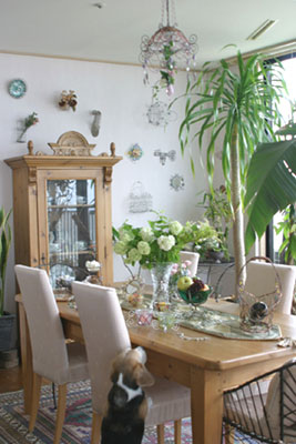 シャンデリアもワイヤーとビーズを使ったハンドメイド。