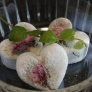 ![]() ![]() ![]() (左)フレグランスシート。「パラフィンワックスにハーブをあしらいました。香付けはエッセンシャルオイルよりもパヒュームオイルがお勧めです」(中)ハーブはもちろんグリーンも大好き。「レッスン中にも楽しんでいただけたらと思っています」(右)ビーズワックスのキャンドル。「プレゼント用にラッピングしました。ビーズワックスは香がとてもやさしいので大好きです」 |