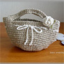 麻ひもで編んだかわいいベビーシューズや麻ひもバックに、コサージュまで…素敵な編みもの作品を手がけるminさんの登場です!