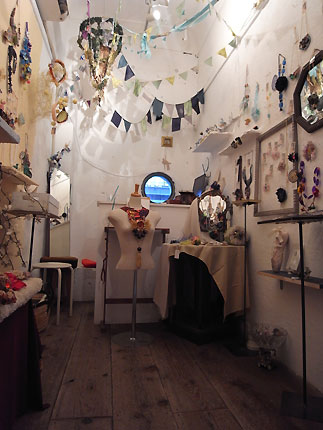 はい。最初はどんなものを作ろうかと、取りかかるまでにも時間を要し、制作にも時間がかかっていました。2006年のお店のオープンから4年経ち、今はやり方も覚え、自分の作風が狭まってきました。私は、アクセサリーの中でも、ヘッドドレスを制作することが多いですね。手染めの布を重ねてコサージュを作り、そのコサージュをアクセントにしたカチューシャを作ったり、大ぶりのバレッタなどを作ったり……。素材も常に模索しています。ビニール、羽根、ビーズなどなど。昨年くらいからストロー素材にも着目していて、ストロー素材を編んだ花でヘッドアクセサリーを作っています。ストロー素材と言えば、帽子のイメージが強いですが、私が作るものは土っぽさとマリンを組み合わせたようなテイスト。Tシャツにデニムとか、なにげない普段着のファッションにヘアだけとびきりオシャレに! そんな楽しみ方をしてほしいですね。そして、私の作るアクセサリーを持っているだけでワクワクしてもらえたら……と思います。