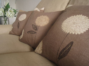 布製のソファカバーやクッション、テーブルリネンなどを制作するソフトファニシング作りです。イギリスに来る前は「ソフトファニシング」という言葉すら知りませんでしたが、自己流で作ったソファーのカバーを夫の母に褒められた時、何やらひらめいたものがありました。あれは予感だったのでしょう。