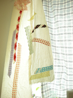 「部屋の窓のカーテンは個展で作った布を