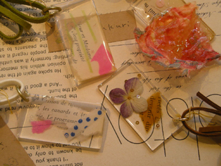 夏に似合う樹脂を使ったネックレス。古い海外雑誌のページや