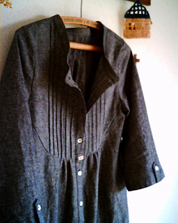 「大好きなピンタックワンピ。綿麻ダンガリーで作ったので