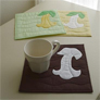 土台に紬調の布を使って和モダンの感じを出しています。コースターを市松