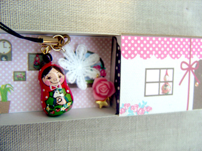 また、ひょうたんガールみたいな女の子の絵のものを「もっと持ち歩けるような感じにできないかな?」ってある人に言われて、樹脂粘土の土台に絵付けをしてストラップを作っているのですが、樹脂粘土での展開も広げたいですね。こういう細かい作業は好きなので。