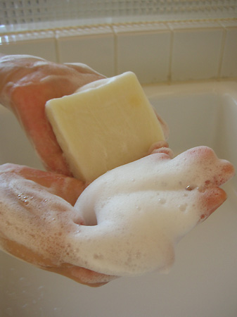 あと、もっとも大切にしているところは、泡のキメの細かさなんです! もちろん、材料は天然素材だけ。その材料の微妙な配合によって、泡立ち方が全然違うんです。泡が肌の汚れを取り除いてくれるから、その泡のキメにはとことんこだわりました。手にとって、少し水を加えながら、泡立てていくと、ホイップクリームみたいににしっかり弾力があって、肌に吸いつくようななめらかな泡が立つんですよ! まわりの友達にも大好評で、一度使うと、けっこうリピートして使ってくださる方が多いですね。