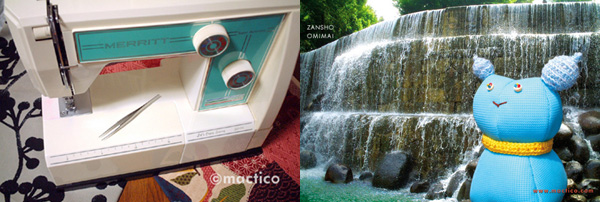 ![]() (左)マクティコさん愛用のミシンとピンセット。小型で先端が丸いピンセットは縫製などに重宝しているのだとか (右)初めて作ったヌイグルミ、「plush splash」の写真を使った暑中見舞 |