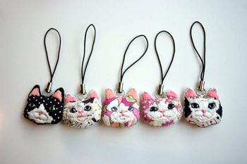 ネコの顔ストラップ。「一匹一匹表情が違います。