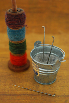 フェルティングニードルと糸巻。ニードル針
