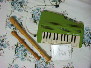 リコーダーとアンデスっていう楽器です。アンデスはメロディオンみたいなのですが、吹くと笛なんです。制作の合間に毎日練習していますが、いい気分転換になりますね。ほかにギターとアコーディオン、ピアニカ、小さな鉄琴や木琴、あとマトリョミン、ピアノなどがいます。