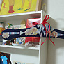つくってもらった棚。作品やお気に入りのものをディスプレイ。