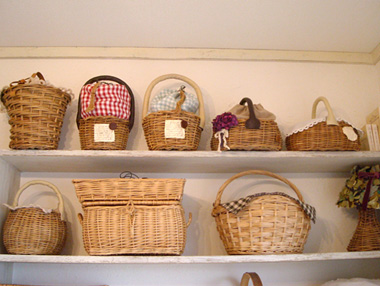 自身が作ったカゴバッグや、購入したものがずらり。