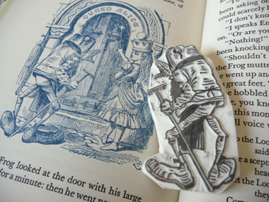 大好きなアリスの挿絵のはんこ。彫ってて楽しかったカエルの作品。