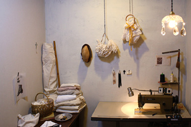 小さなアトリエには祖母から譲り受けたミシン。