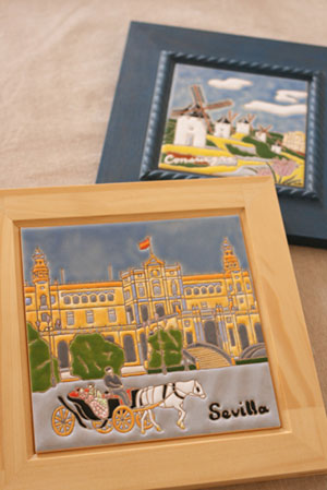 場とラマンチャ地方の風車の絵をタイルに焼き上げました」